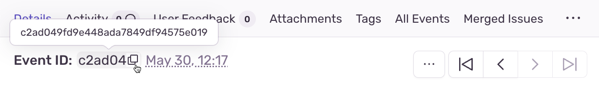 To use the automated verification process, install and configure the Sentry Command Line Interface. Then, use the sourcemaps explain command, calling it with the relevant event ID, found in the top-left corner of the Issue Details page in sentry.io.